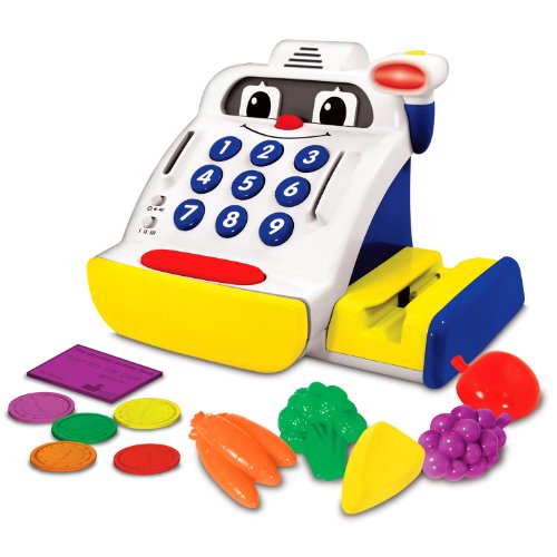 678480 Features: -Shop and learn cash registers.-Friendly voice, three play modes: Shopping, find it, play.-Pop-out cash drawer, battery operated.-Introduces numbers and basic counting skills.-Develops language skills and social interaction skills.-Reinforces listening and problem solving skills.-Recommended for ages 2 + years. Includes: -Requires two ''AA'' batteries(included). Color/Finish: -Five colorful food items, five coins and one credit card.